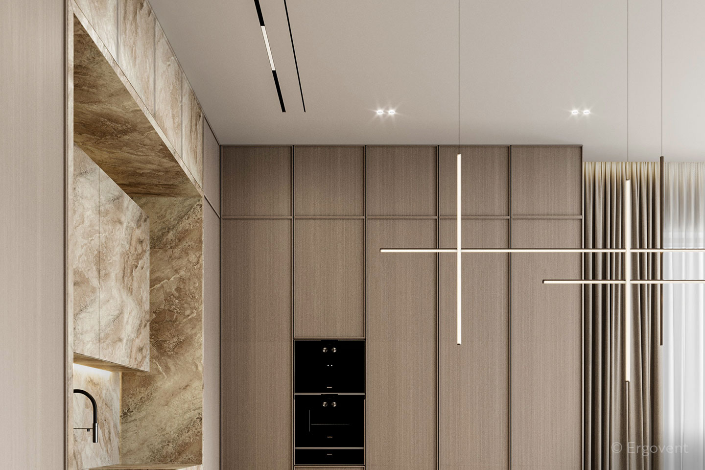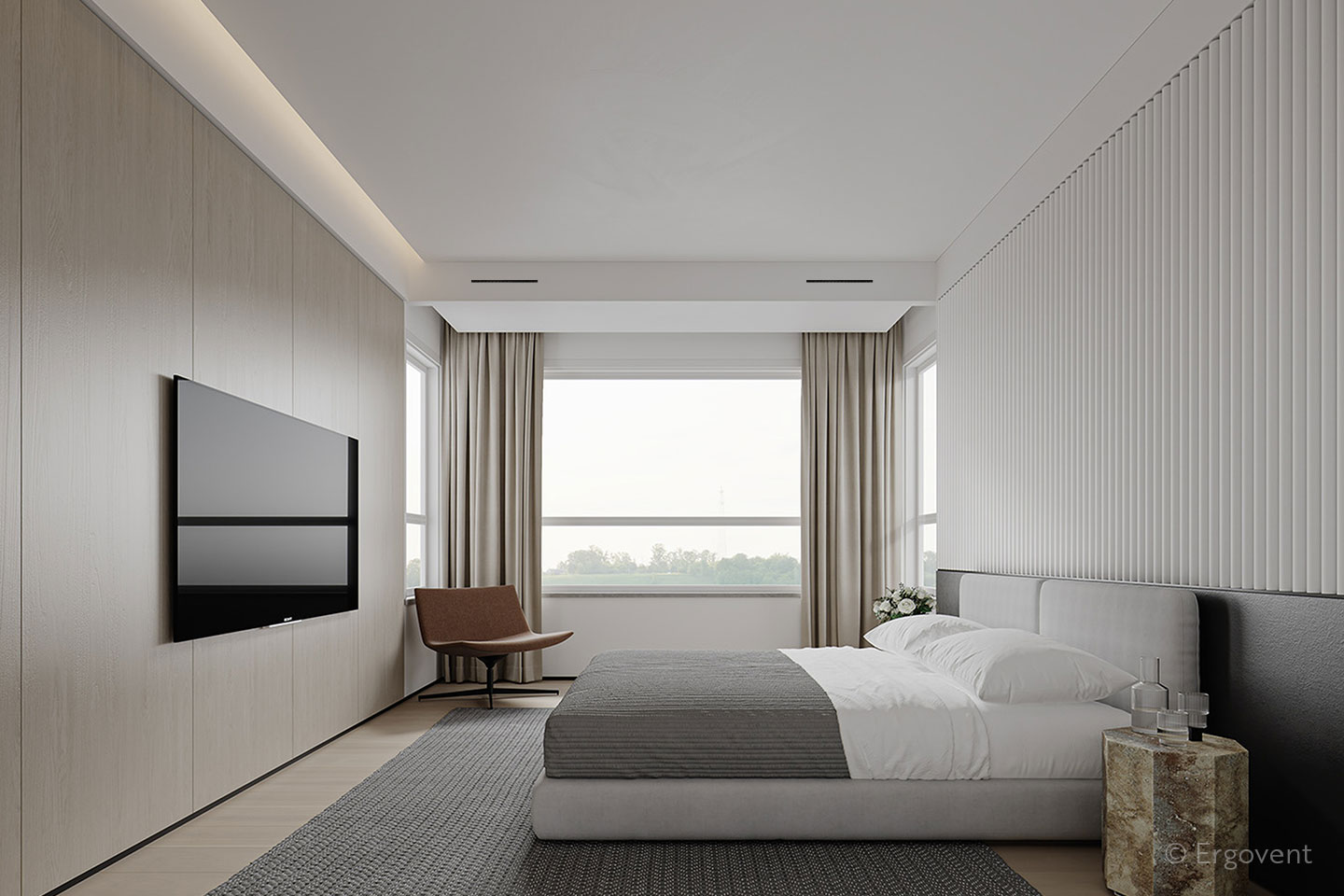 Anemostaty LINEO łączą funkcjonalność z dyskretnym wyglądem. Po montażu są szpachlowane i malowane w tym samym kolorze co sufit lub ściana. Widoczna pozostaje jedynie minimalistyczna linia, stanowiąca stylowy element wnętrza.